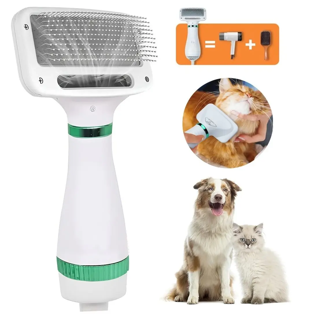 El secador de pelo para mascotas combina secador de pelo con peine para mascotas, puede secar el pelo y peinar para darle forma al mismo tiempo.