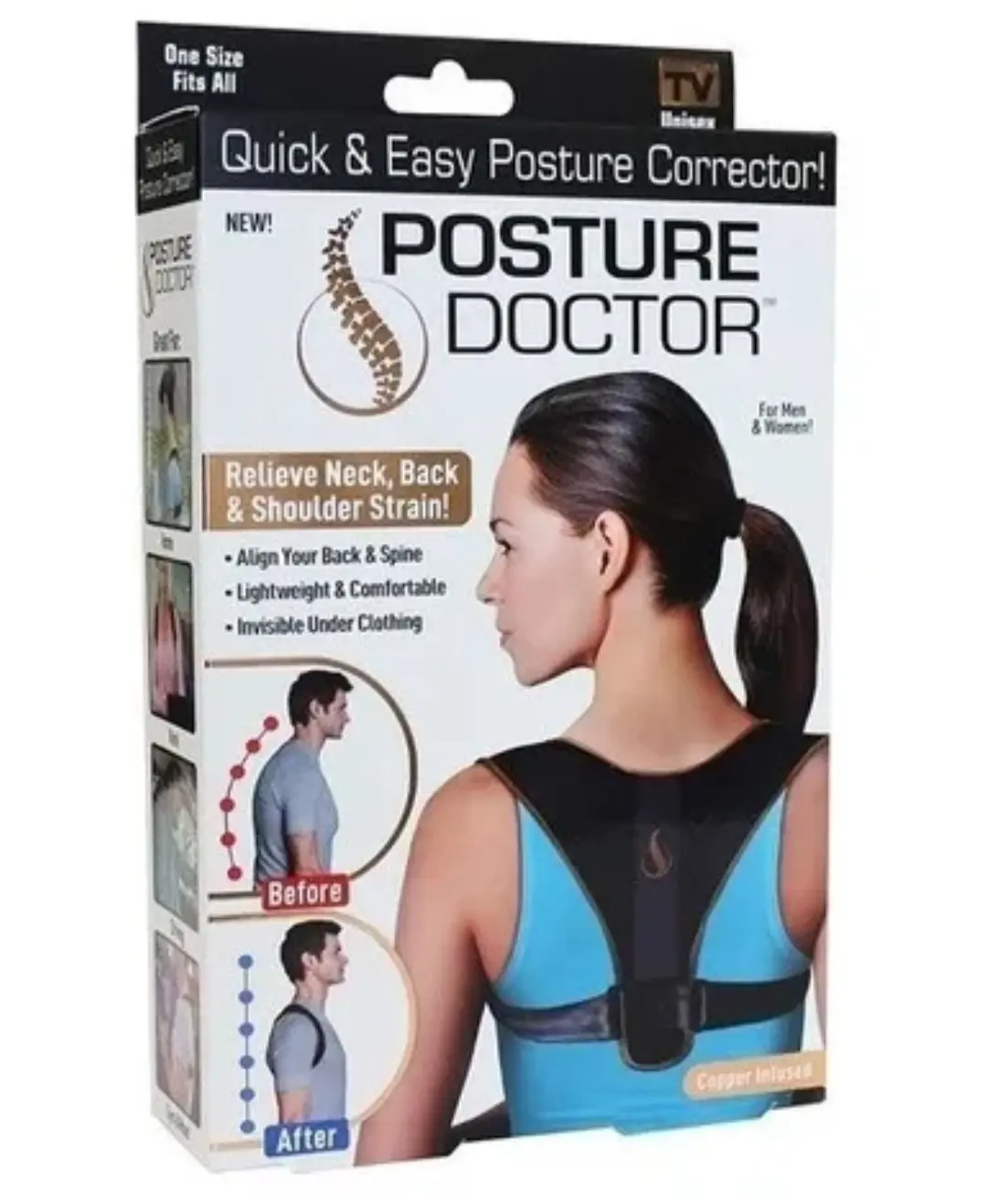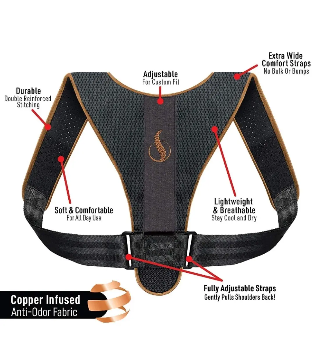 El corrector postural ayuda a enderezar la espalda al instante, alinear los hombros y descomprimir la columna vertebral.