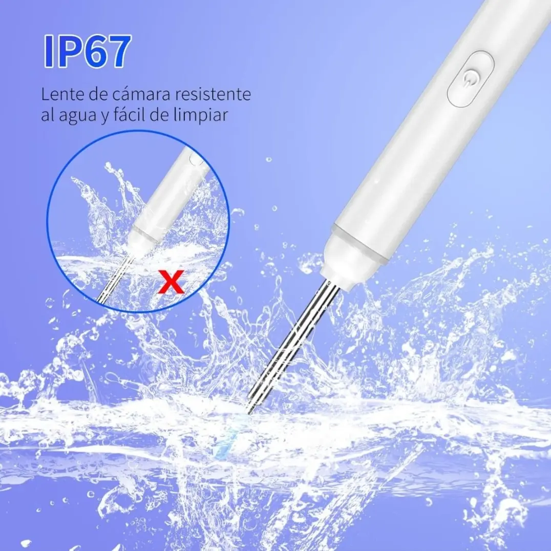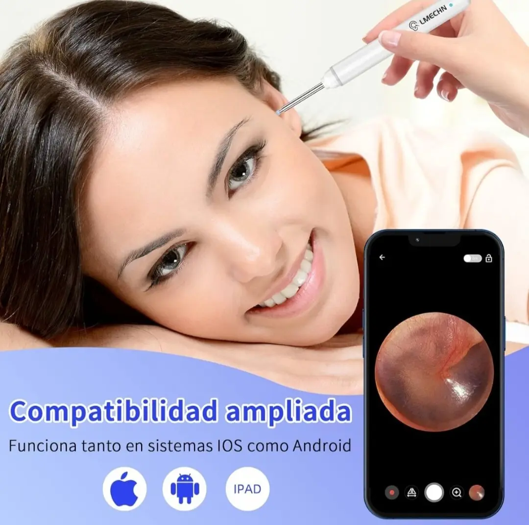 Dispositivo innovador para el cuidado auditivo que permite una limpieza precisa, cómoda y segura. Incorpora una micro camara de aaMta definición conectada por WIFI para visualizar en tiempo real el interior del oido desde tu celular.